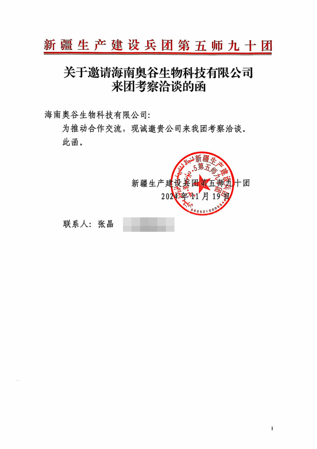 新疆生產(chǎn)建設(shè)兵團(tuán)第五師九十團(tuán)達(dá)成意向合作
